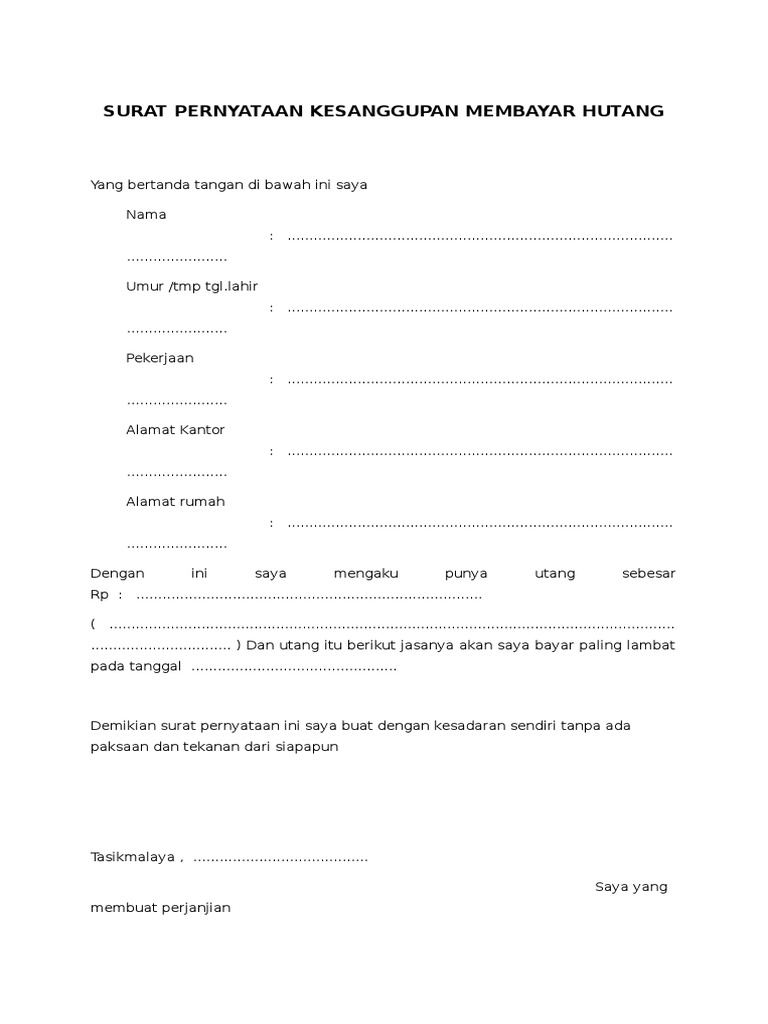 Contoh Surat Kesanggupan Membayar Hutang Belajar Office