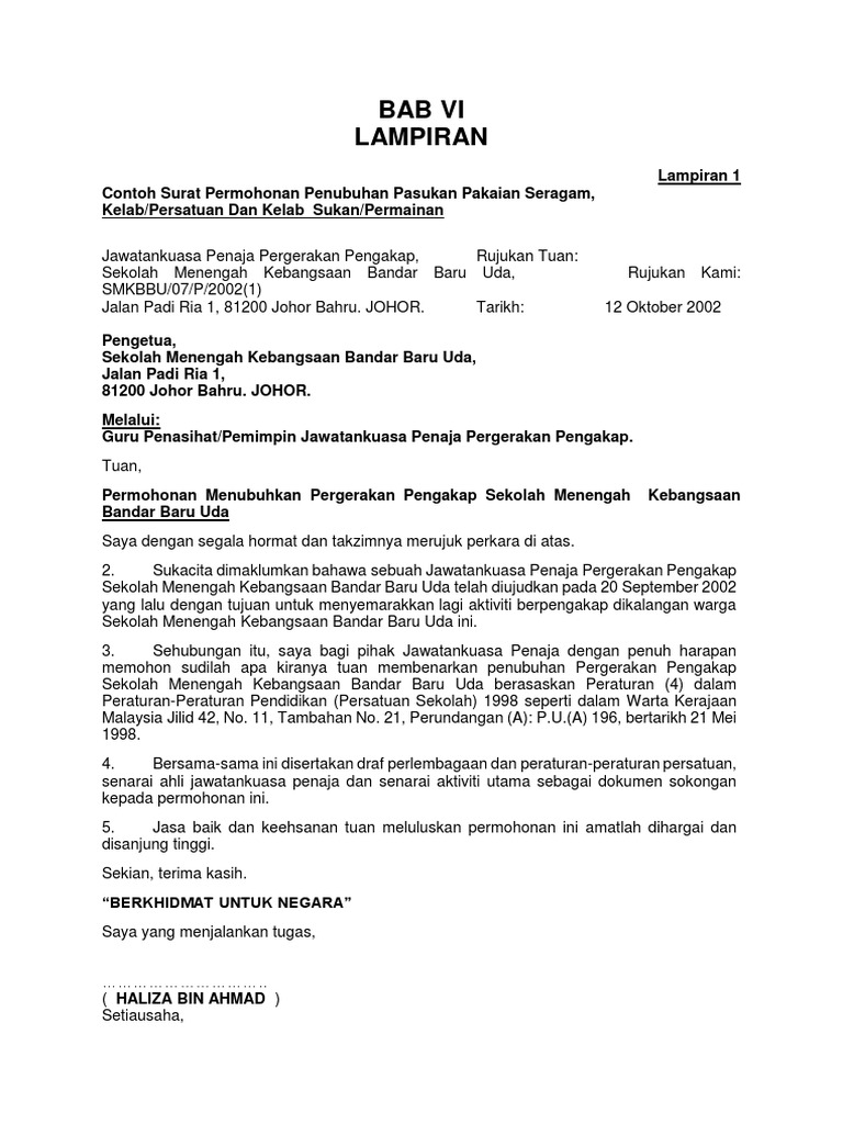 Contoh Pelbagai Surat Permohonan Pelaporan Pengakap