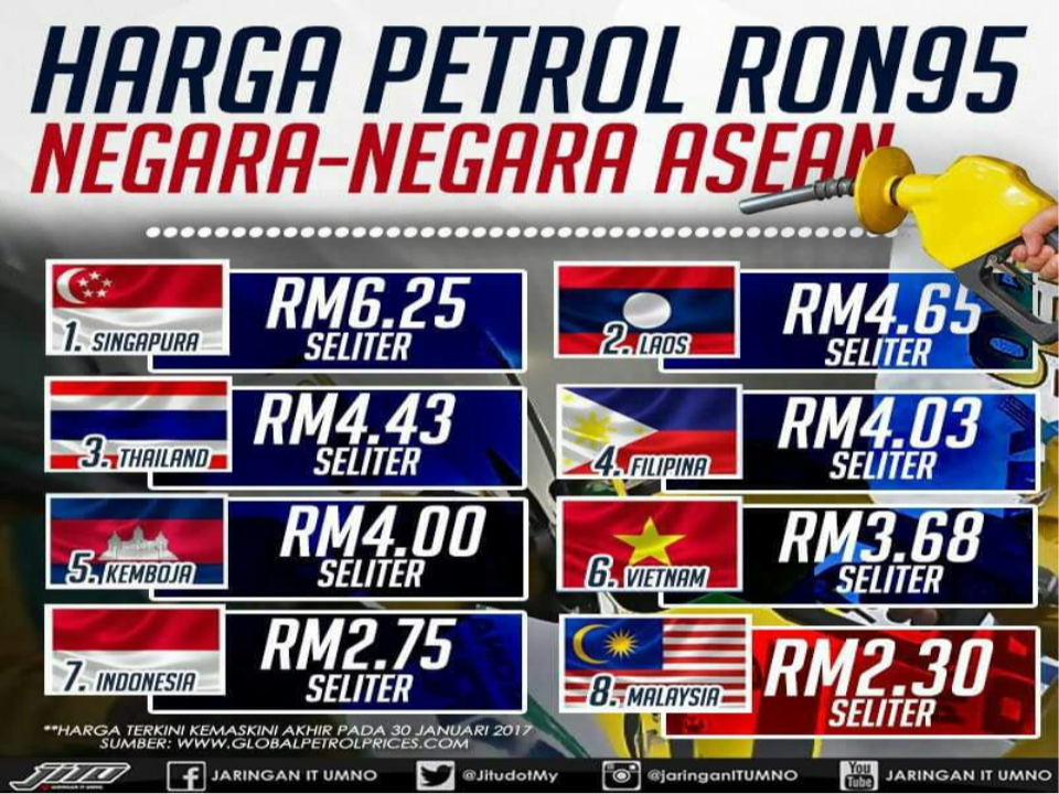 Harga Minyak Malaysia Petrol Price 95 Rm2 13 97 Rm2 41 Diesel Rm2 11 30 March 5 April 2017
