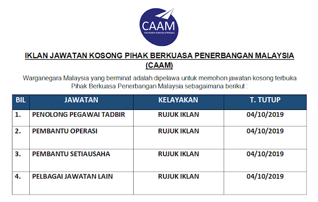 Permohonan Pelbagai Jawatan Kosong Pihak Berkuasa Penerbangan Malaysia Caam 2019 Malaysia Kerjaya