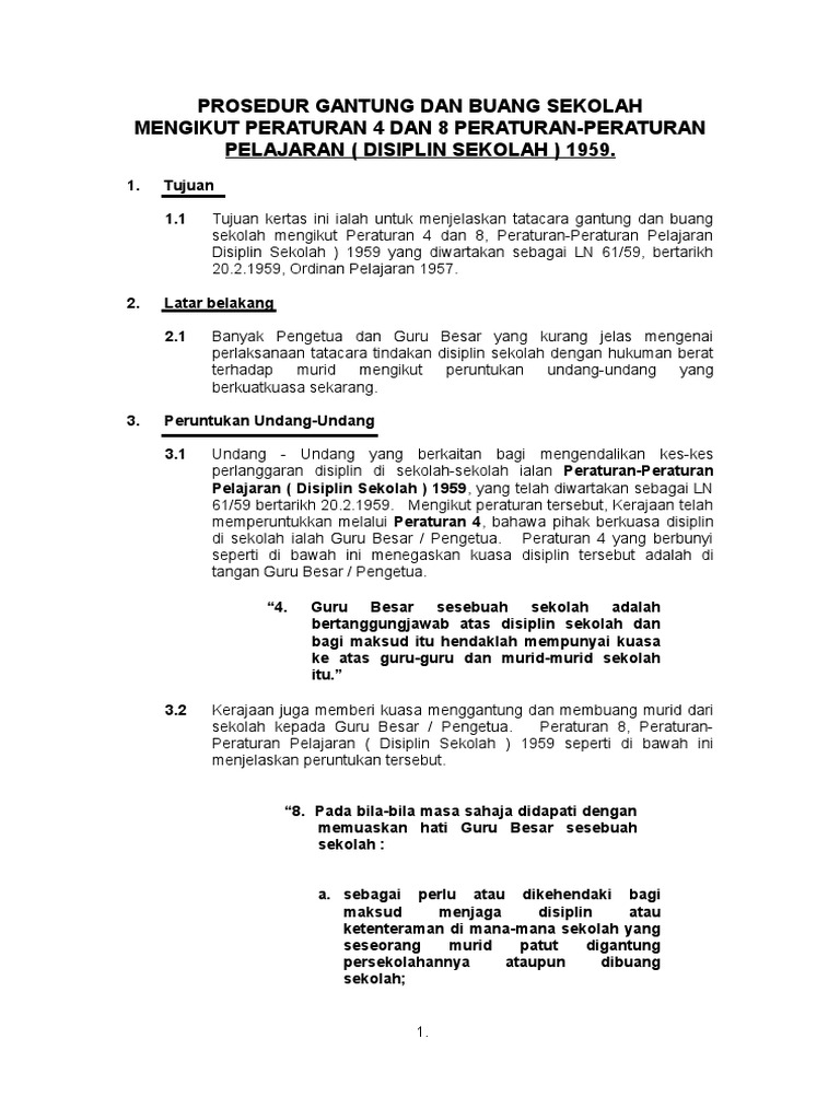 Prosedur Gantung Dan Buang Sekolah Mengikut Peraturan 4 Dan 8 Peratur