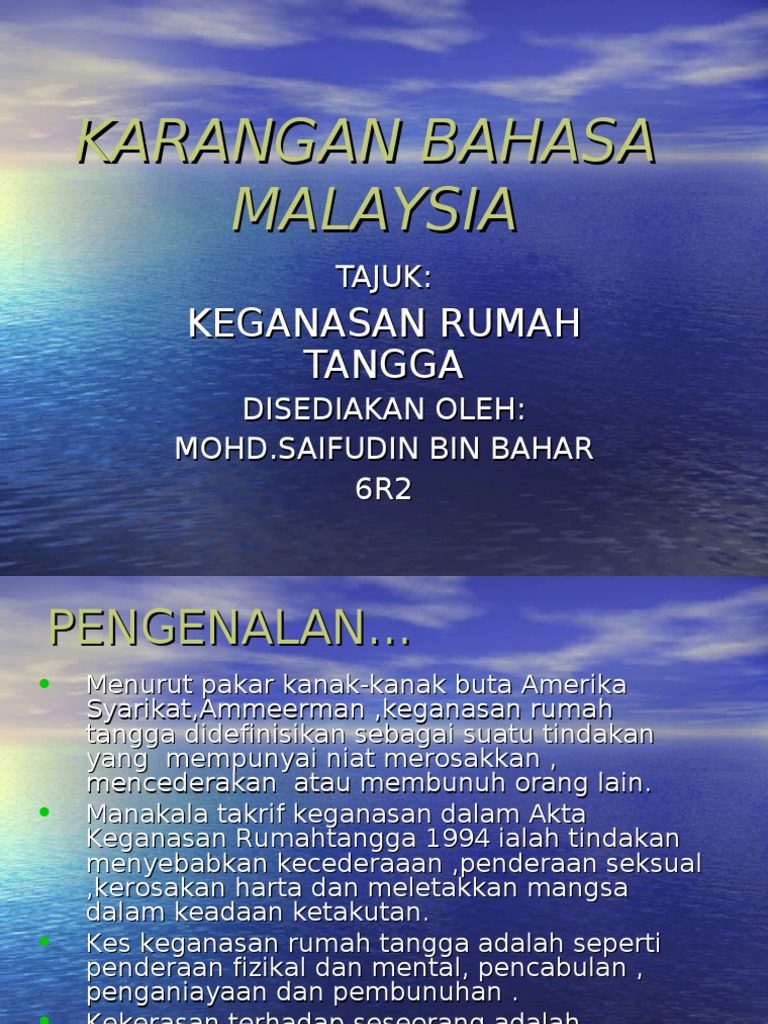 Mybahasa Melayu Punca Keganasan Rumah Tangga