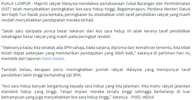 Najib Razak Taraf Pendidikan Rendah Punca Kos Sara Hidup Tinggi Malaysiantrending