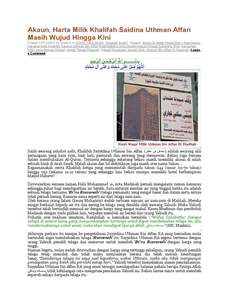 Saidina Uthman Bin Affan R A Kaya Lagi Dermawan Majalah Labur