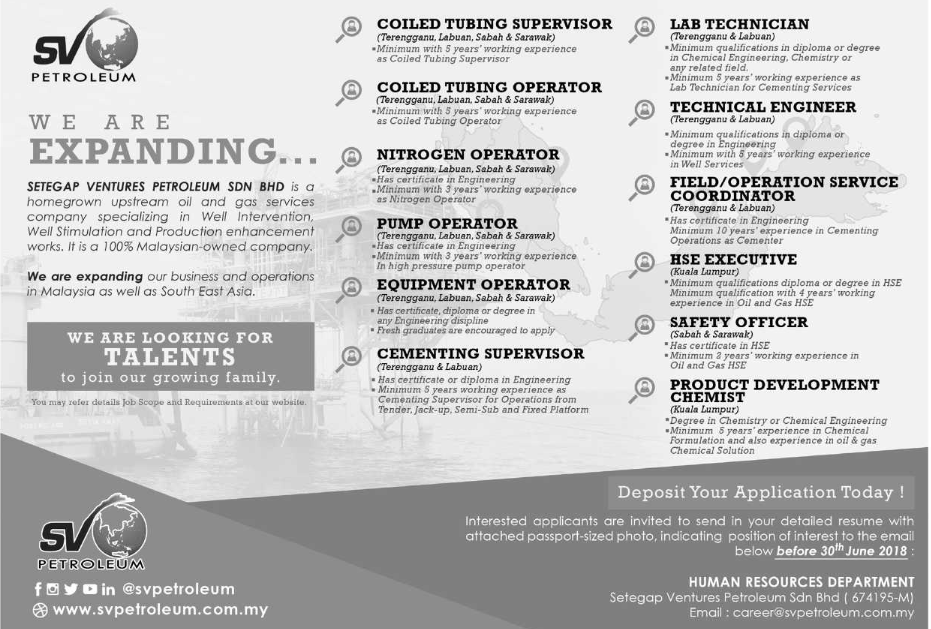 Oil Gas Vacancies Sv Petroleum Terengganu Kl Sabah Sarawak