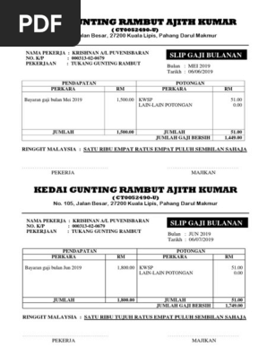 Contoh Slip Gaji Bulanan Swasta Di Malaysia Peatix
