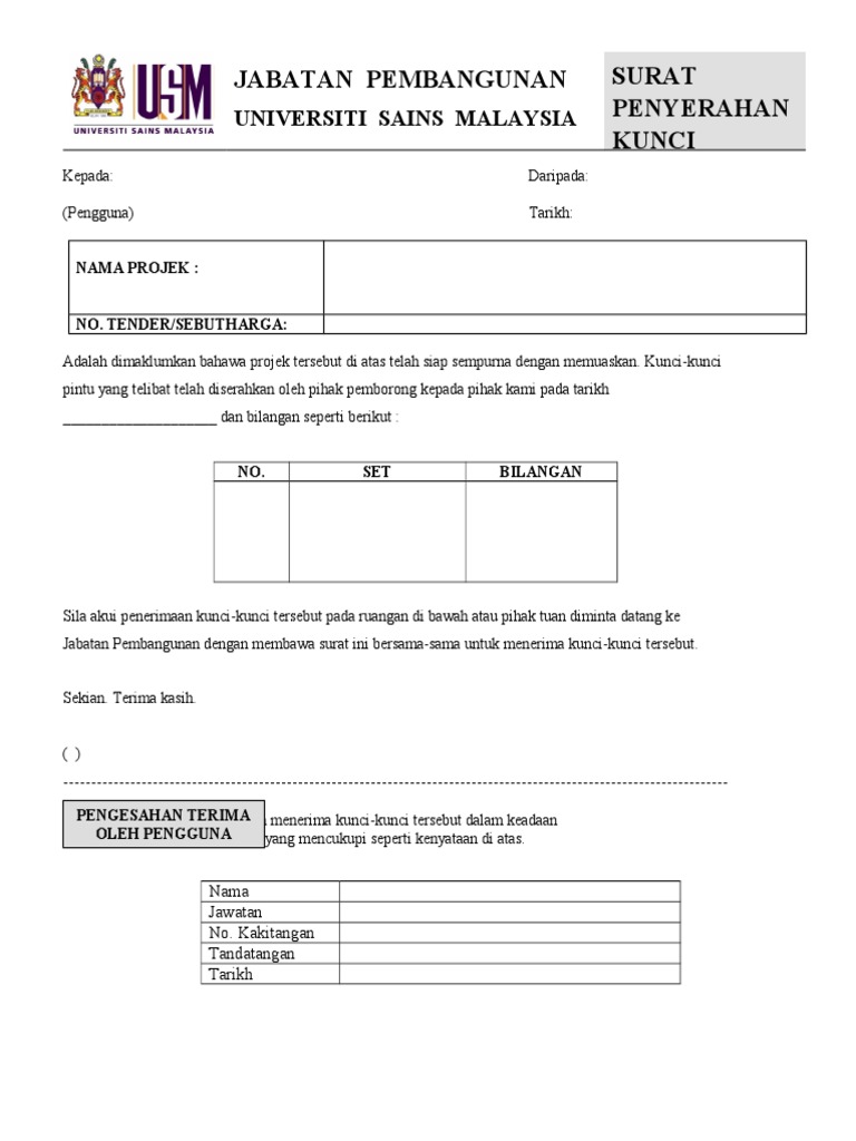 Doc Surat Serahan Kunci Docx Nedy Elmayra Academia Edu