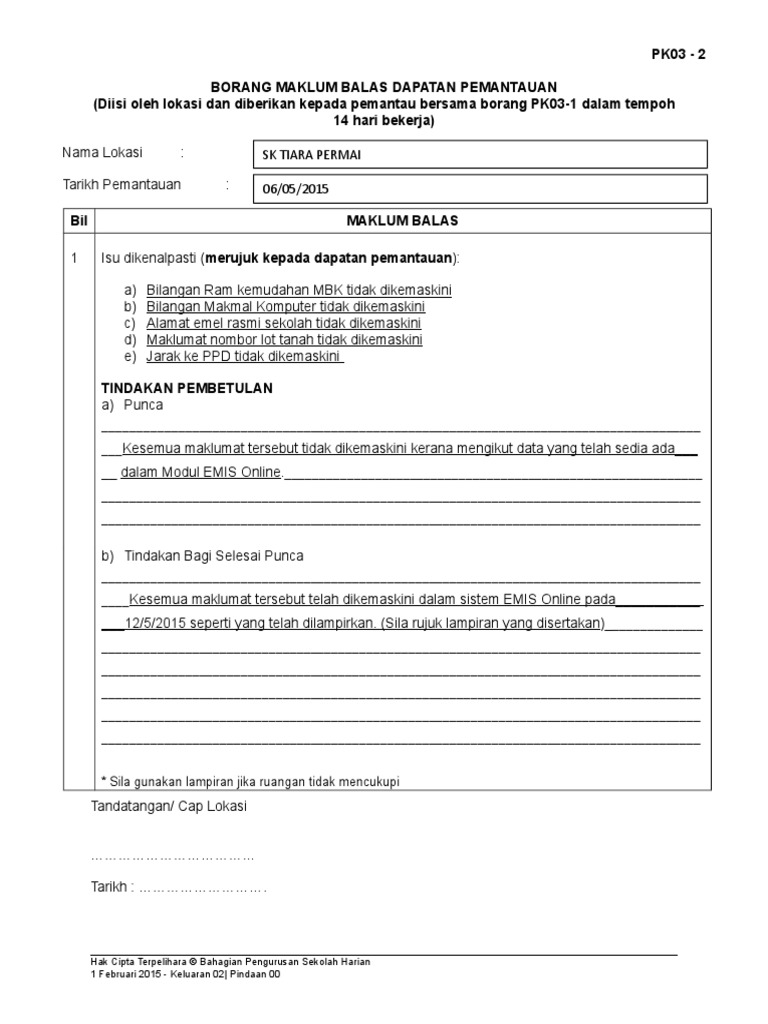 Pk03 2 Borang Maklum Balas Dapatan Pemantauan Doc