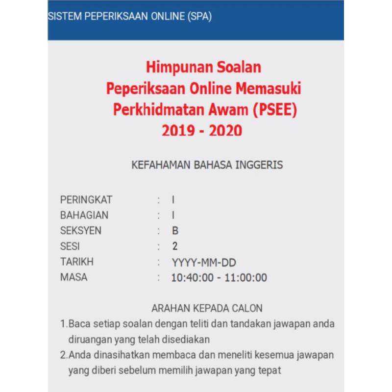 Contoh Soalan Peperiksaan Online Pegawai Tadbir Negeri N41 Ptn Negeri Johor 6 Exam Reading Spa