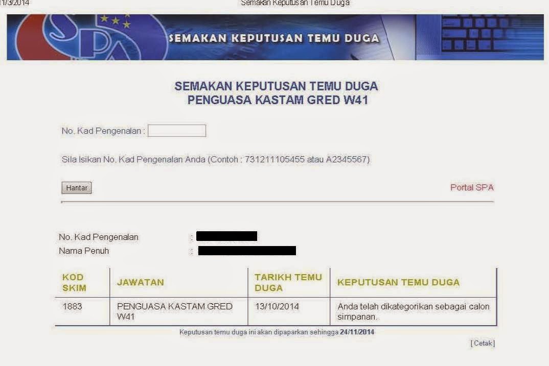Semakan Status Permohonan Spa Keputusan Peperiksaan Temuduga