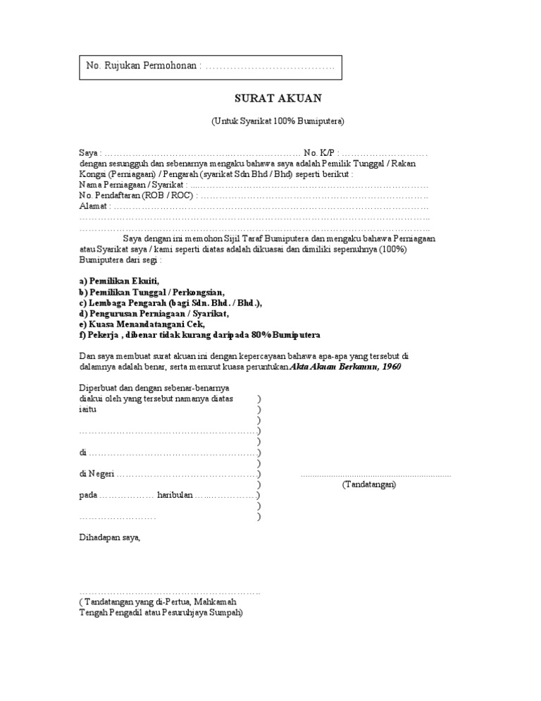 Surat Akuan No Rujukan Permohonan