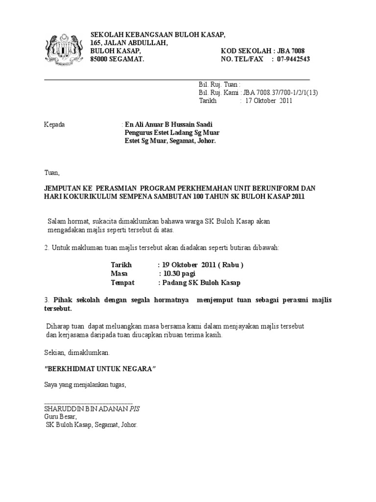 Contoh Surat Rasmi Jemputan Ke Program Surasmi G