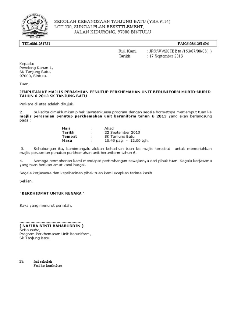 Contoh Surat Rasmi Jemputan Ke Program Surat Rasmi Ra