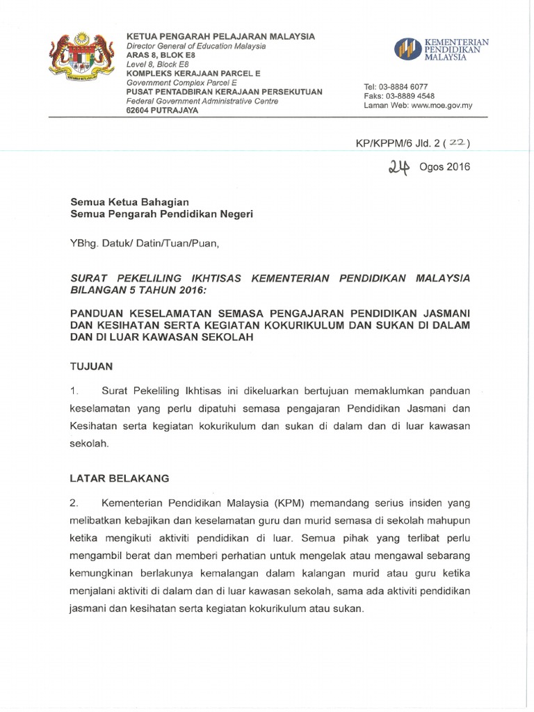 Pekeliling Panduan Keselamatan Semasa Pengajaran Pendidikan Jasmani Dan Kesihatan Serta Kegiatan Kokurikulum Pendidik2u