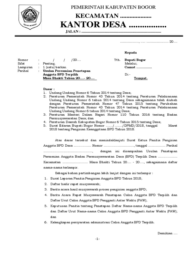 Contoh Surat Laporan Kades Kepada Bupati Melalui Camat
