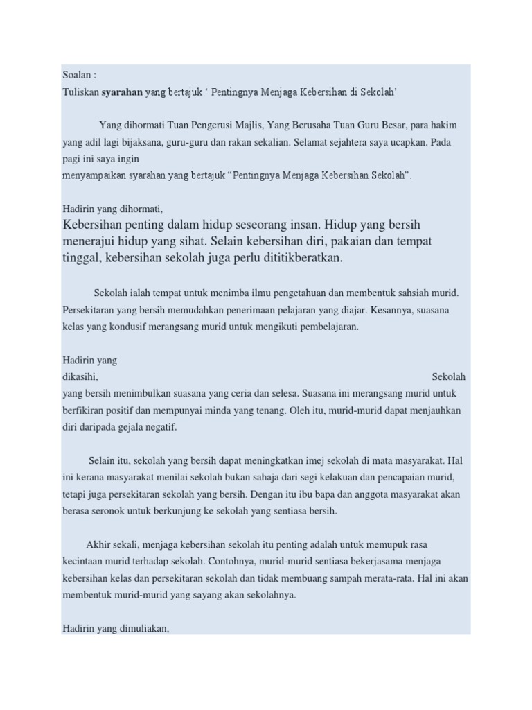 Kebersihan Penting Dalam Hidup Seseorang Insan Hidup Yang Bersih Menerajui Hidup Yang Sihat Selain Kebersihan Diri Pakaian Dan Tempat Tinggal Kebersihan Sekolah Juga Perlu Dititikberatkan