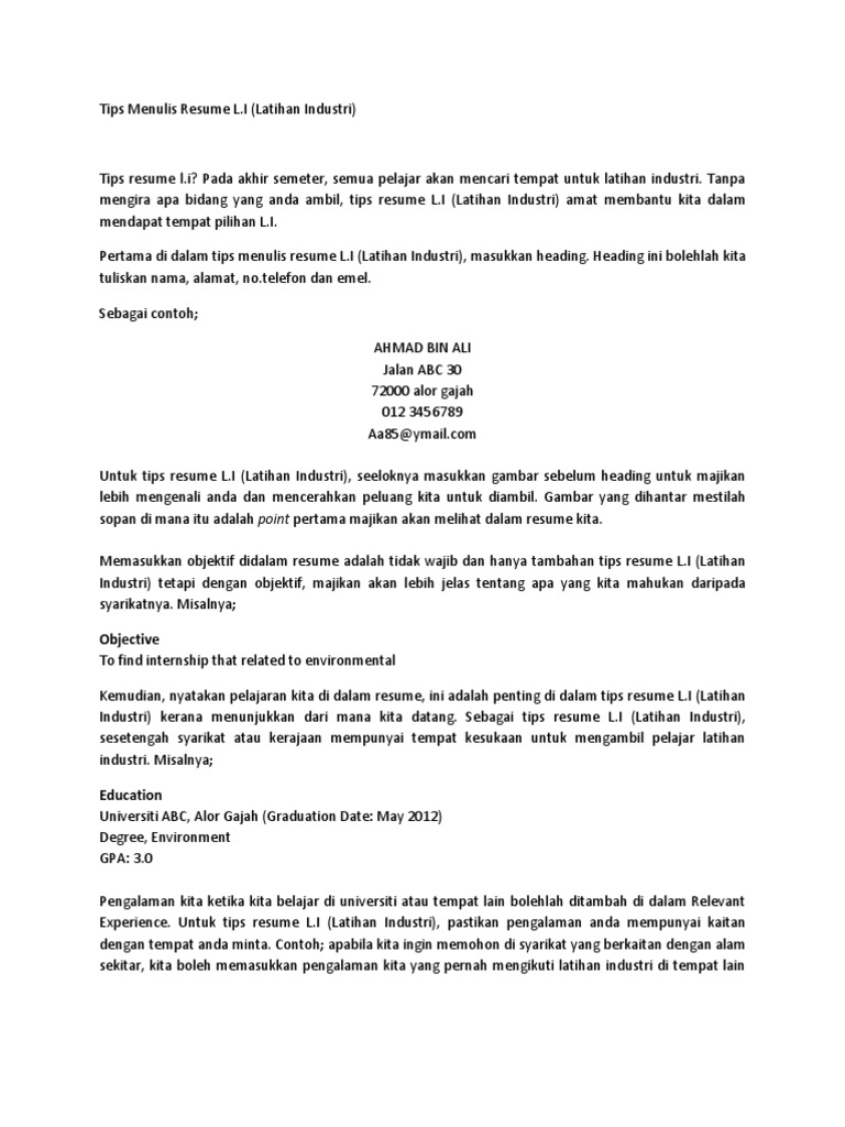 Contoh Surat Permohonan Kerja Latihan Industri Kecemasan Y