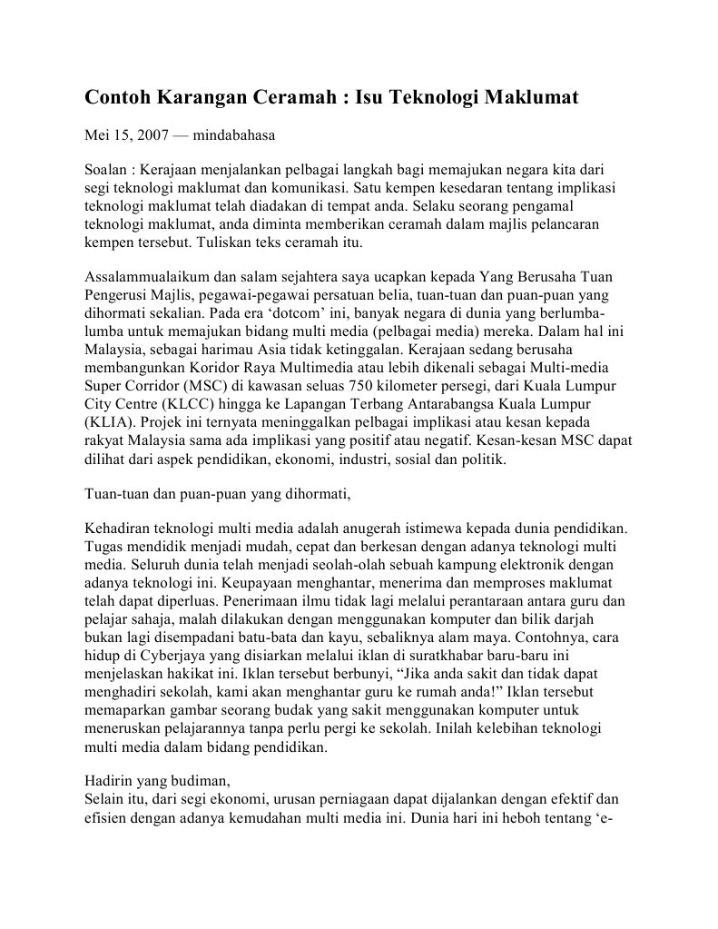 Contoh Karangan Ceramah Isu Teknologi Maklumat