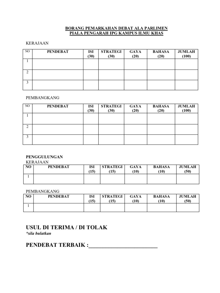 Borang Pemarkahan Debat Ala Parlimen