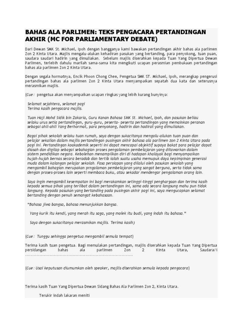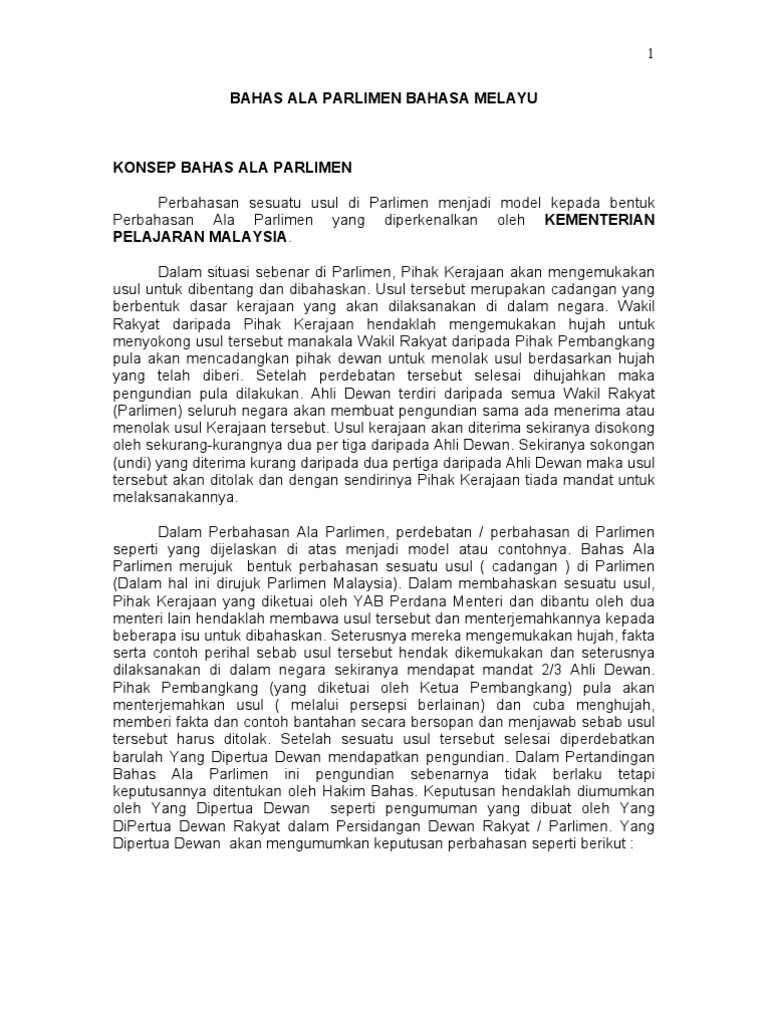 Doc Contoh Teks Pendahuluan Bahas Ala Parlimen A Tuan Yang Dipertua Dan Ahli Ahli Dewan A Kami Menerima Dengan Pindaan Definisi Usul Pihak Kerajaan A Degan Izin Tuan Yang Dipertua Saya Mohon Meminda