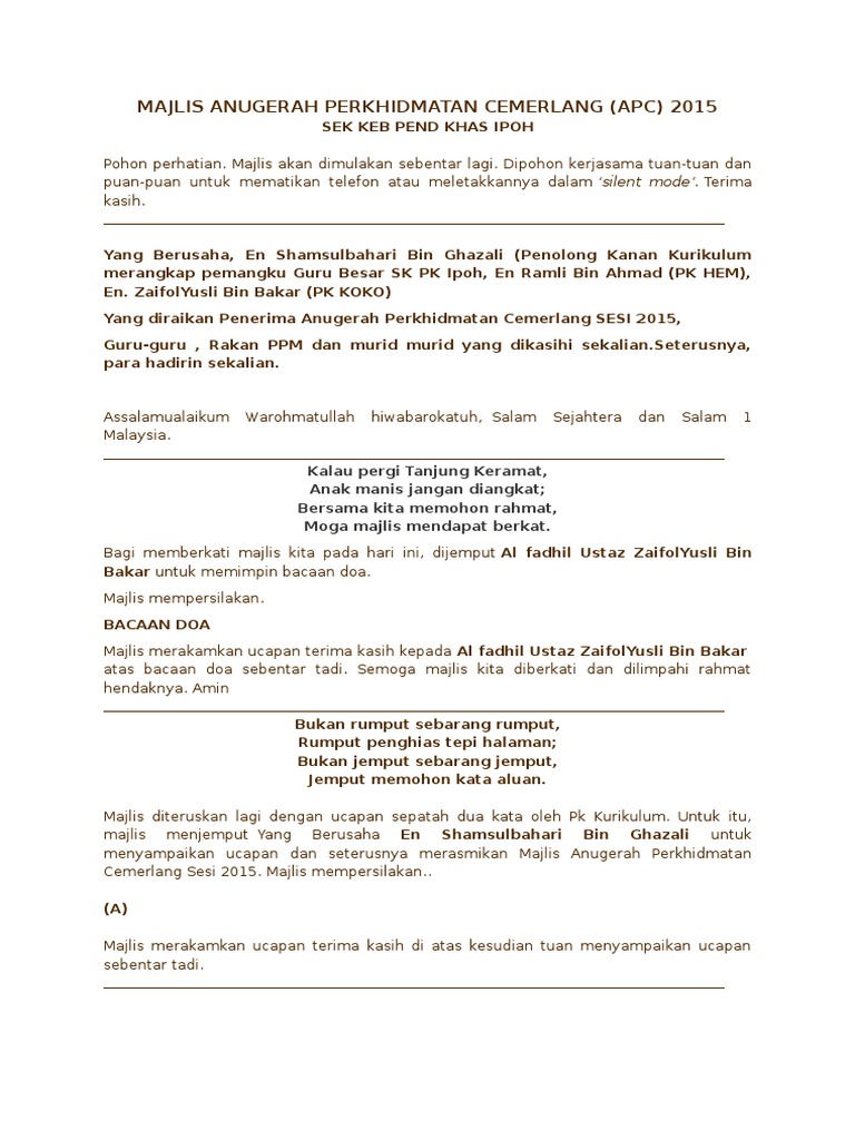 Doc Teks Pengacara Majlis Anugerah Cemerlang Bayyinah Raflis Academia Edu