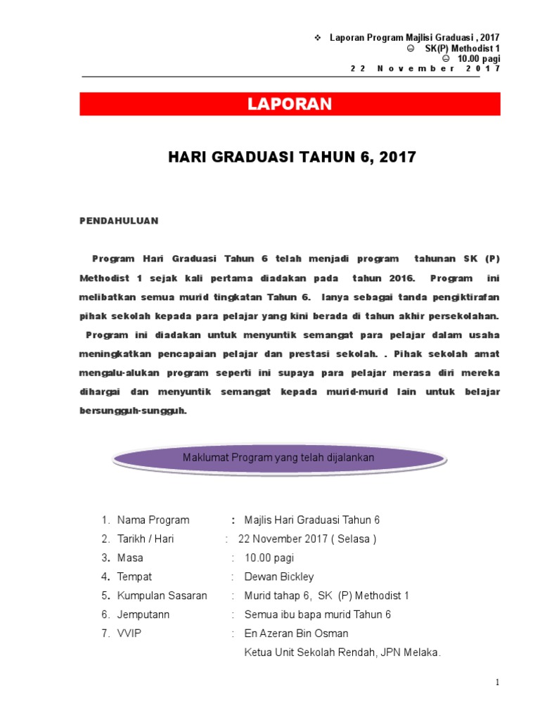 Kertas Kerja Majlis Graduasi Tahun 6 2