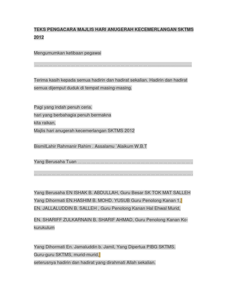 Doc Teks Pengacara Majlis Anugerah Kecemerlangan Pelajar Mira Maru Academia Edu