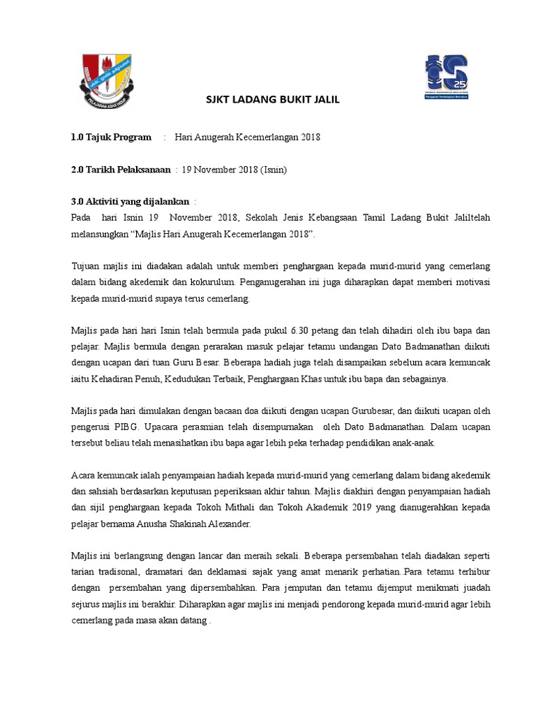 Sjkt Ladang Bukit Jalil 1 0 Tajuk Program Hari Anugerah Kecemerlangan 2018