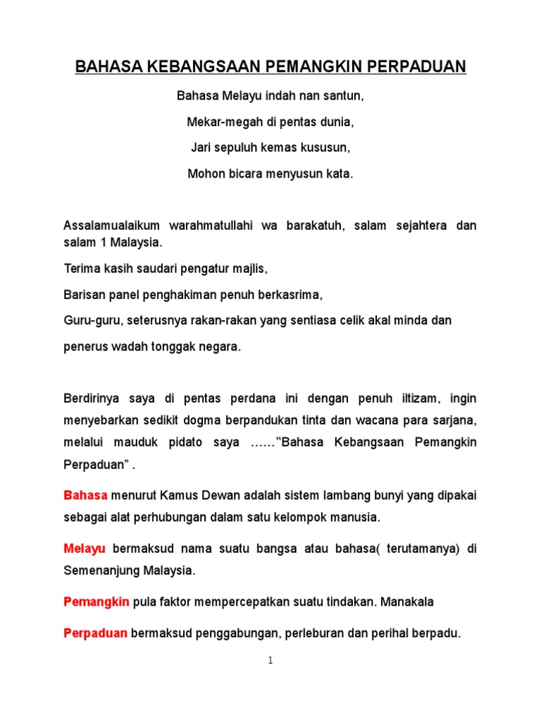 Panitia Bahasa Melayu Smk Sultanah Engku Tun Aminah Teks Pidato Bahasa Melayu Tonggak Perpaduan Ba