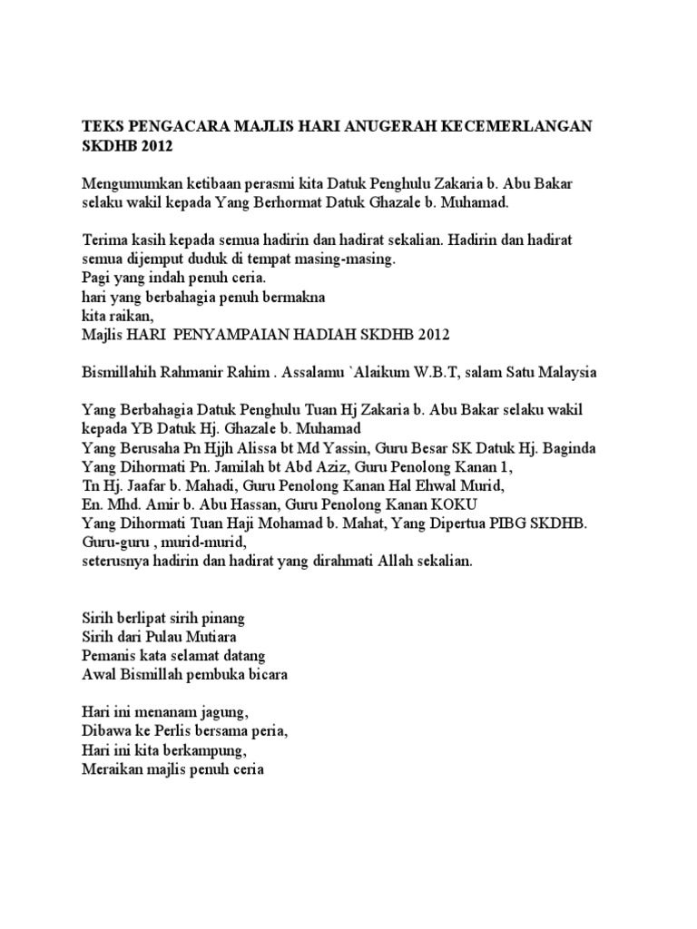 Doc Teks Pengacara Majlis Anugerah Kecemerlangan Pelajar Mira Maru Academia Edu
