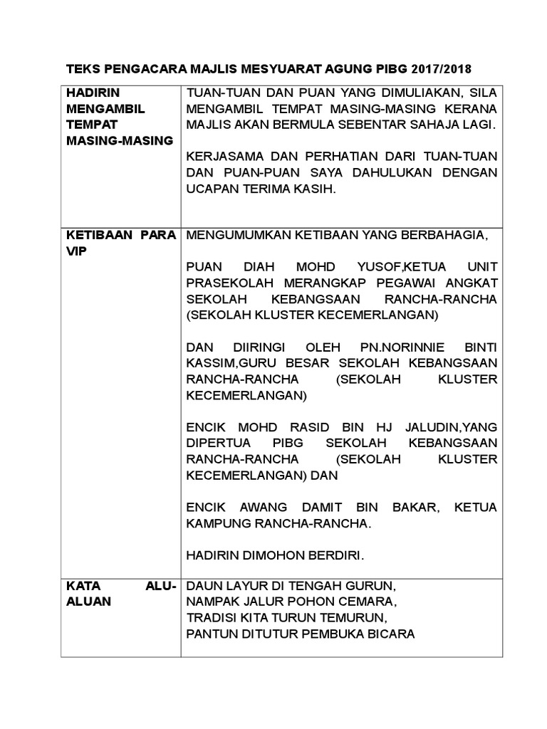 Skrip Pengacara Majlis Mesyuarat Agong Pibg Smk Seri Ampang Ipoh