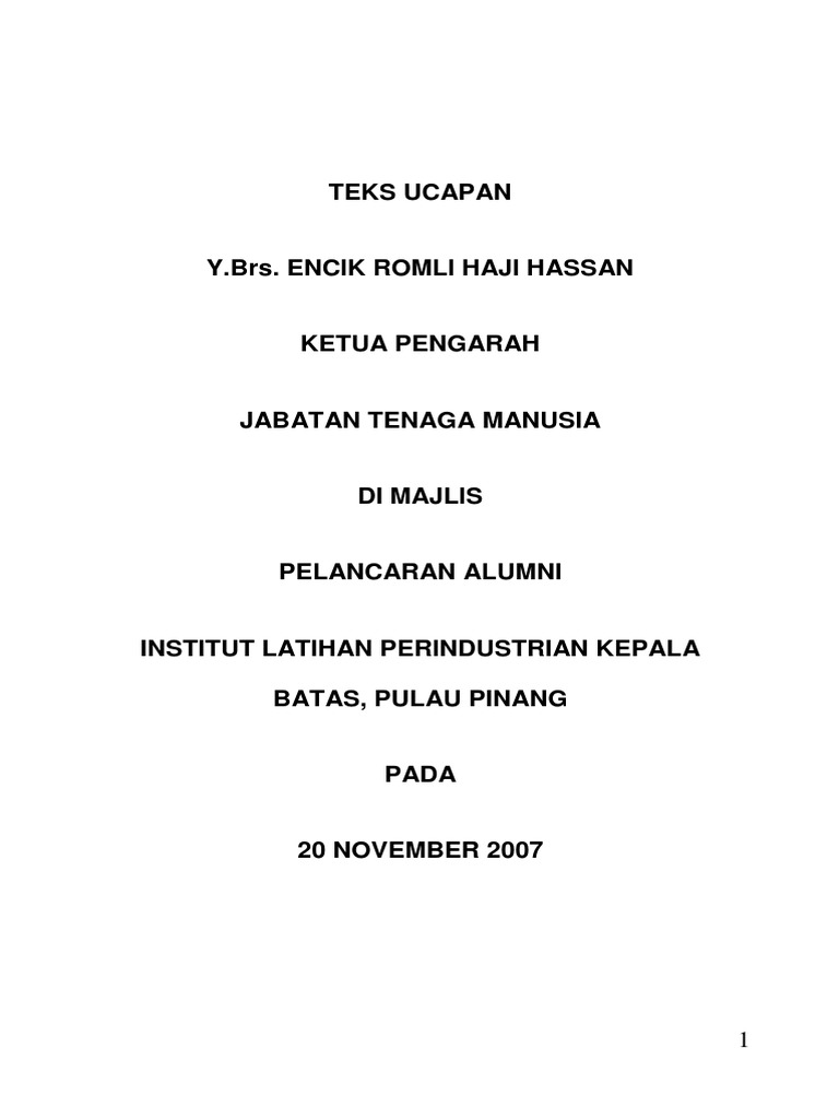Teks Perasmian Kp Jtm Alumni Ilp Kepala Batas