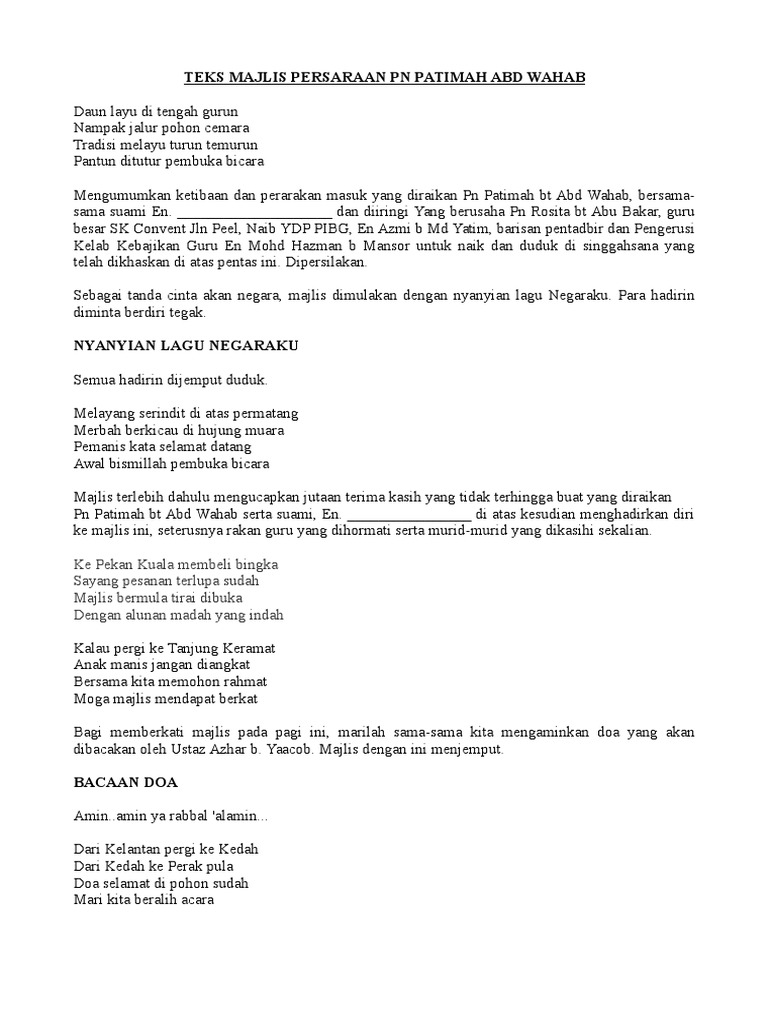 Doc Teks Pengacara Majlis Persaraan Anneza Hussein Academia Edu
