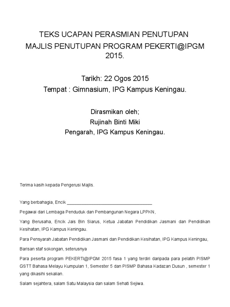 Teks Ucapan Rektor Sempena Program Majlis Taklimat Siswazah Pdf Download Gratis
