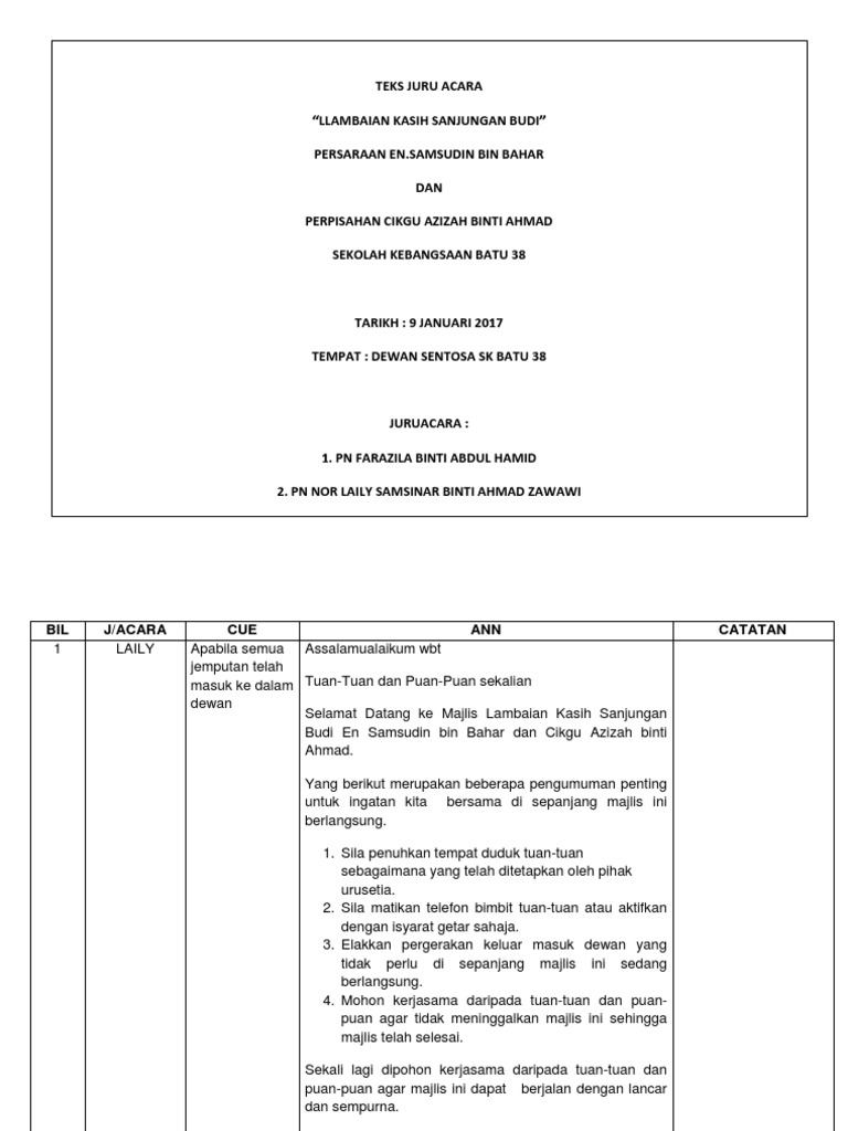 Contoh Teks Majlis Perpisahan Pengetua Docx