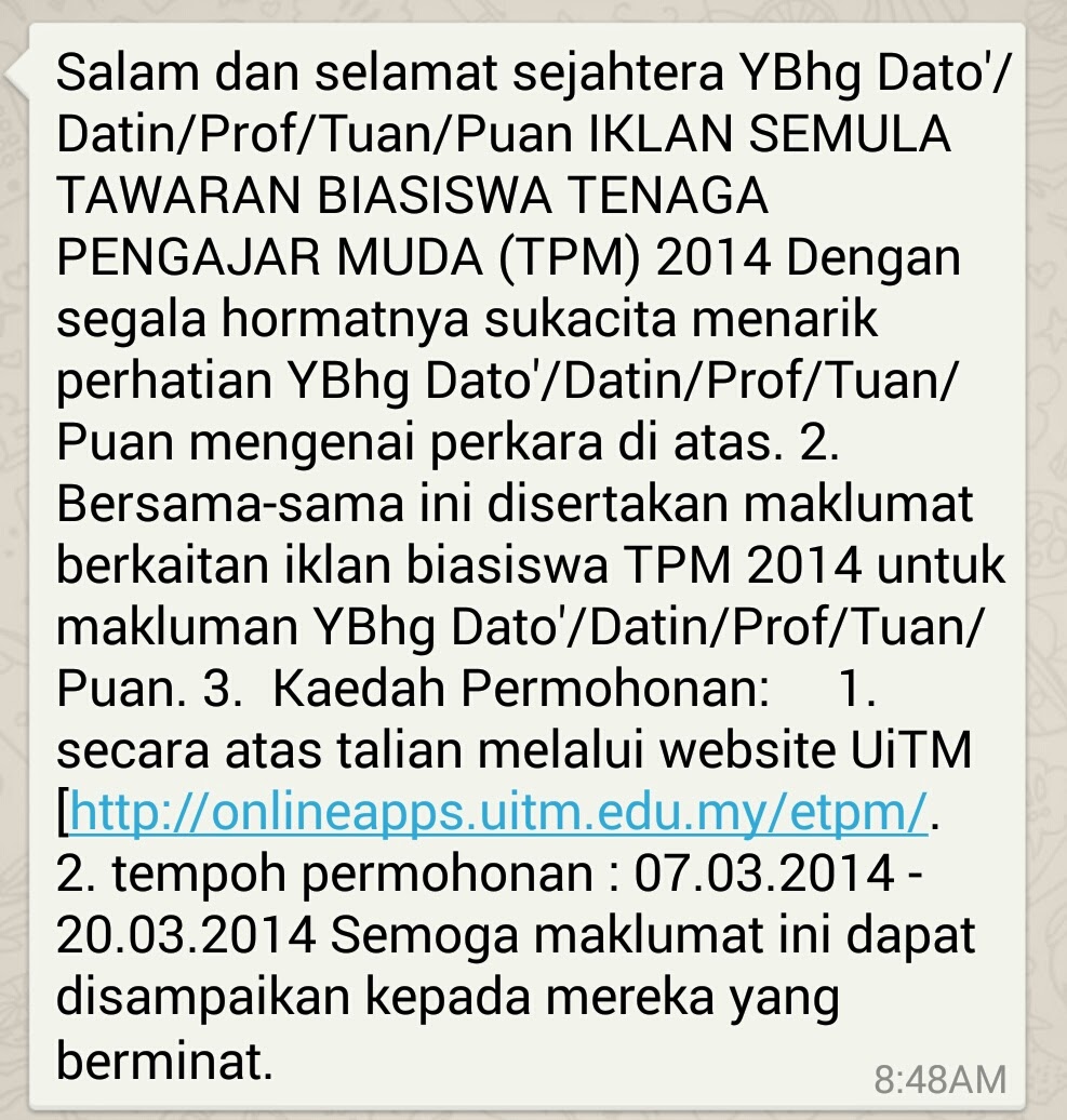Permohonan Biasiswa Tenaga Pengajar Muda Tpm Uitm 2016 Cikgu Ayu Dot My
