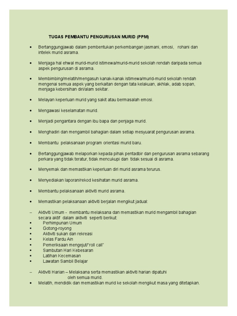 Asrama Kolej Vokasional Shah Alam Blog Tidak Resmi Tugas Pembantu Pengurusan Murid Ppm