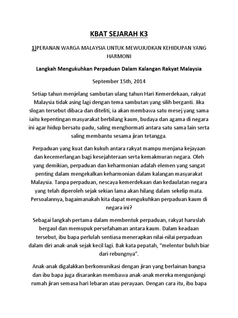 Rumusan Usaha Untuk Memupuk Perpaduan Dalam Kalangan Pelajar Dan Cabaran Yang Dihadapi Bahasa Melayu Spm Kertas 2